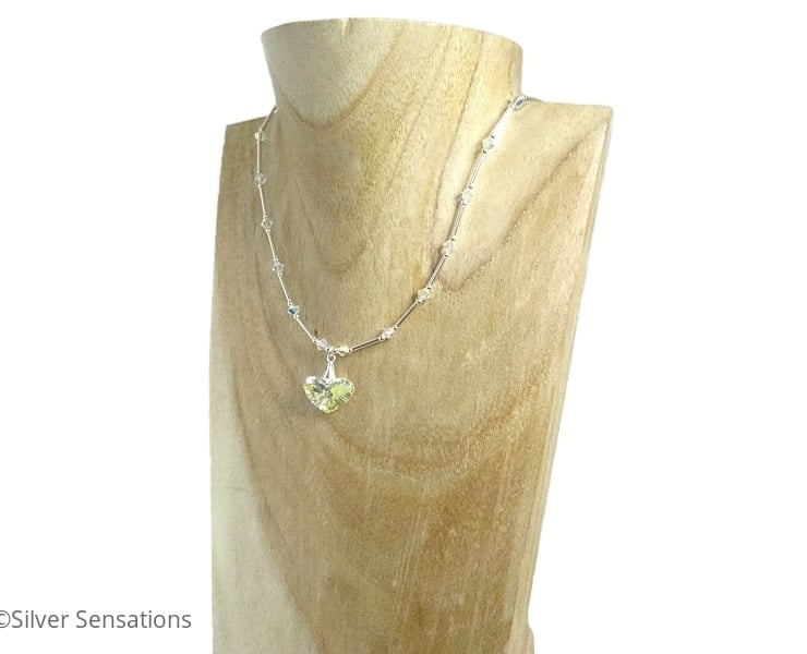 At the front of the necklace is a Swarovski Crazy 4 U heart shaped pendant which is 17mm x 12mm in size & hangs from a Sterling Silver fluted pendant bail.