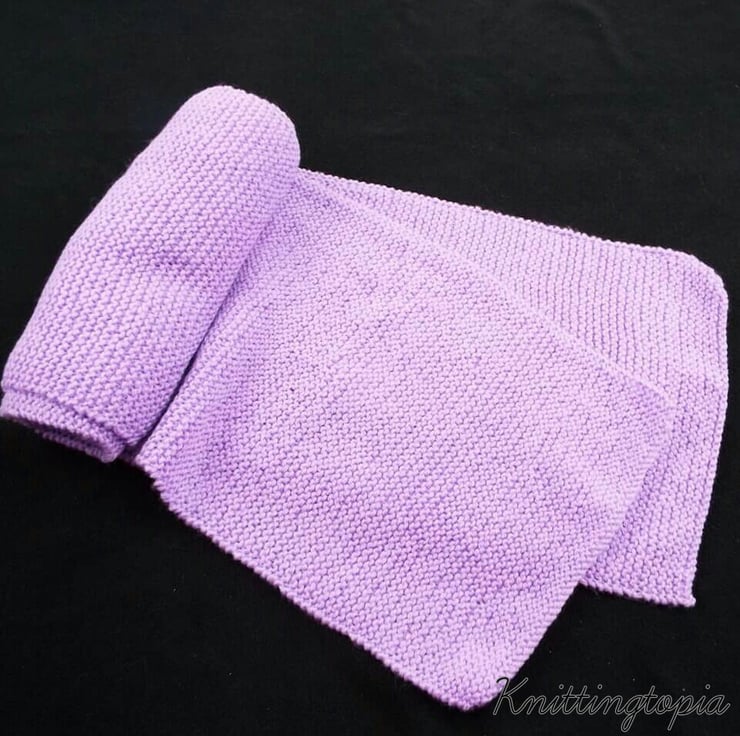 This ladies hand knitted scarf has been made using an acrylic yarn. The colour way is called Litmus which is a lovely mauve colour like litmus paper. It is wide at 9.75 inches (24.75cm) and very long at 72.5 inches (1.84 meters) so there is plenty to wrap around the neck to keep warm or to leave hanging.