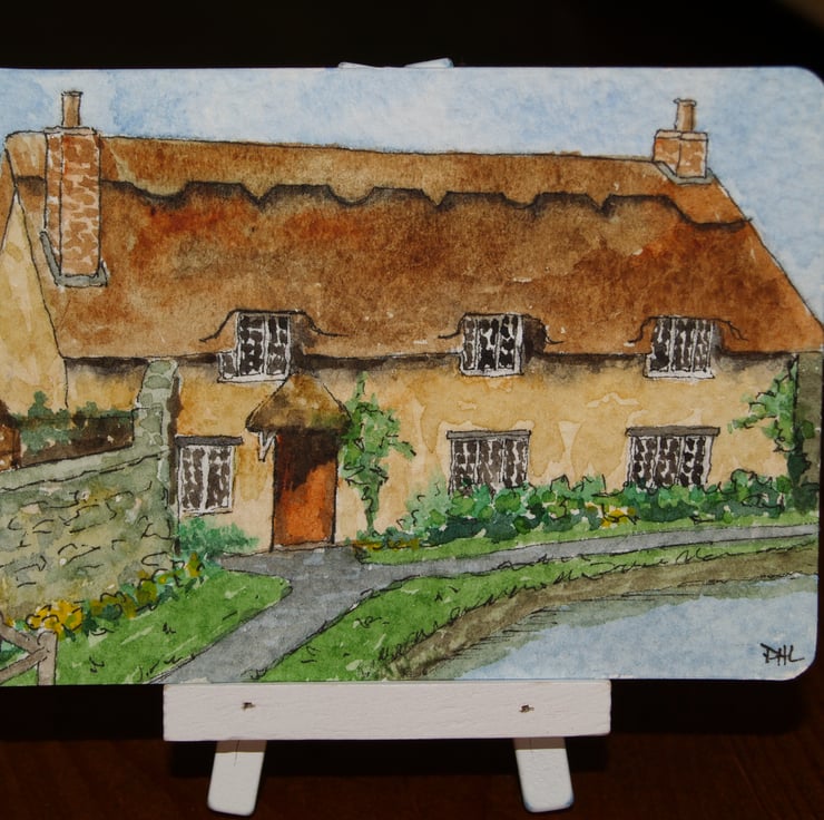 This ACEO is an original, handpainted watercolour of a thatched cottage next to the canal. It measures 2.5 x 3.5 inches (63 x 89mm). No copies have been made of this, ensuring that it would make a unique addition to any ACEO collection.