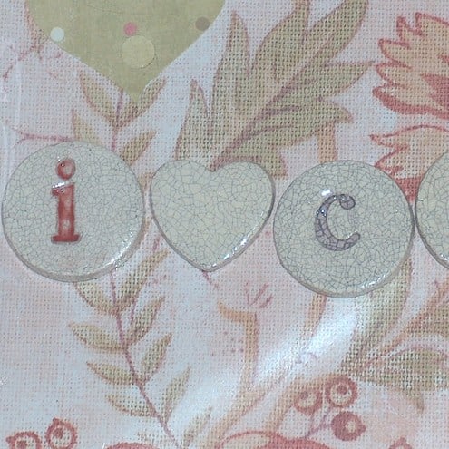Individually handmade ceramic fridge magnets, reading 'I 'Heart' Cake'. Each letter is stamp with my vintage stamps, and coloured using lovely coloured under glaze, then finished in my trade mark crackle glaze. The magnets come packaged with lovely floral shabby chic style backing and my 'Bread and Butter' trademark.