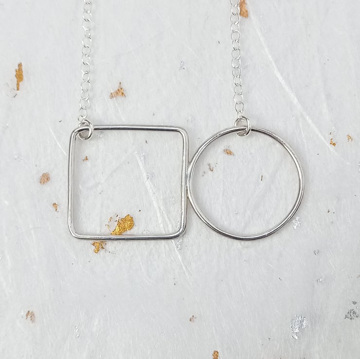 Recycled sterling silver wire circle& square necklace - geometric jewellery