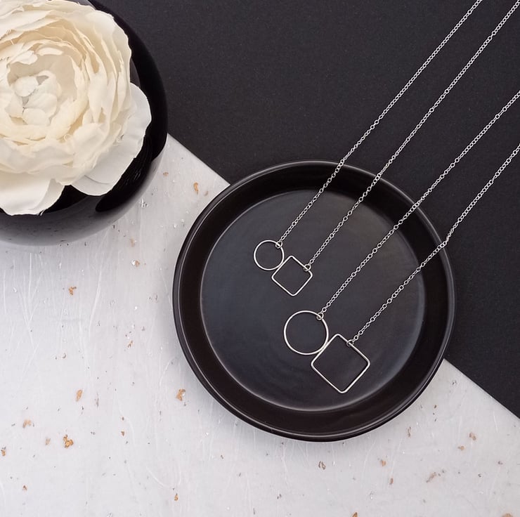 Are you are looking for a gift for someone who loves minimalist jewellery? This circle and square necklace would be great for someone who wear simple accessories.