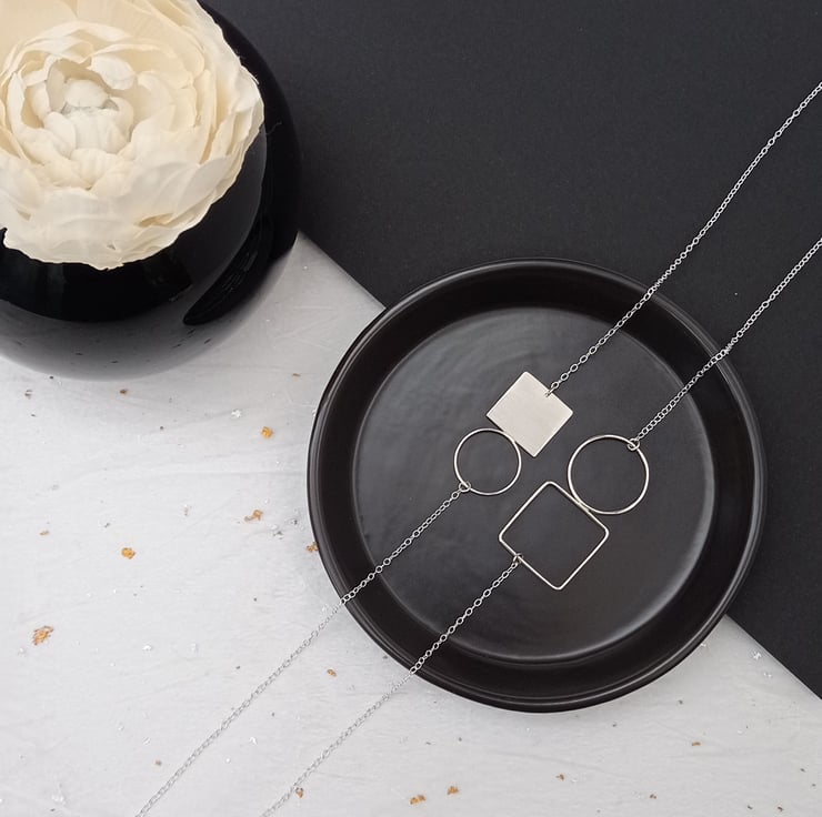 I wanted to design a range made from wire rather than shapes cut out of silver, so was inspired to make something simple & clean. I liked the idea of just working with a circle & a square to create a range of geometric necklaces.
