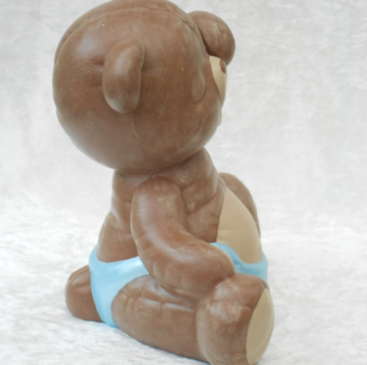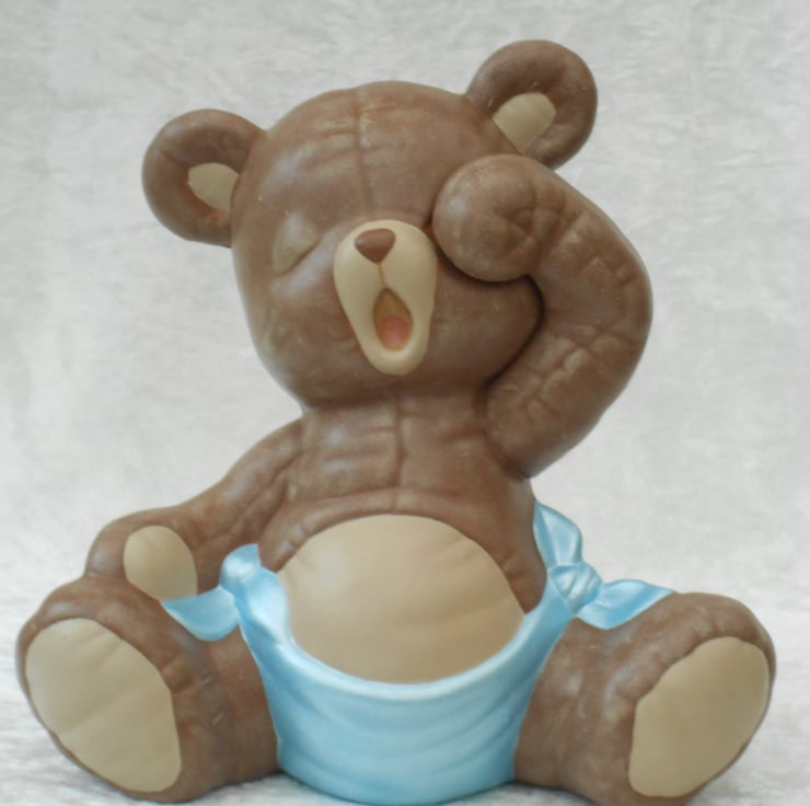 I have for sale a ceramic teddy bear ornament, which was hand painted by myself. It is sitting down, yawning and very sleepy, wearing a blue nappy looking like he is ready for bed. He would make a lovely addition to any child's bedroom shelf, or perhaps given as a gift.