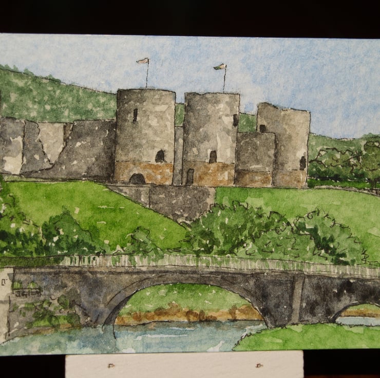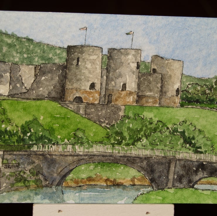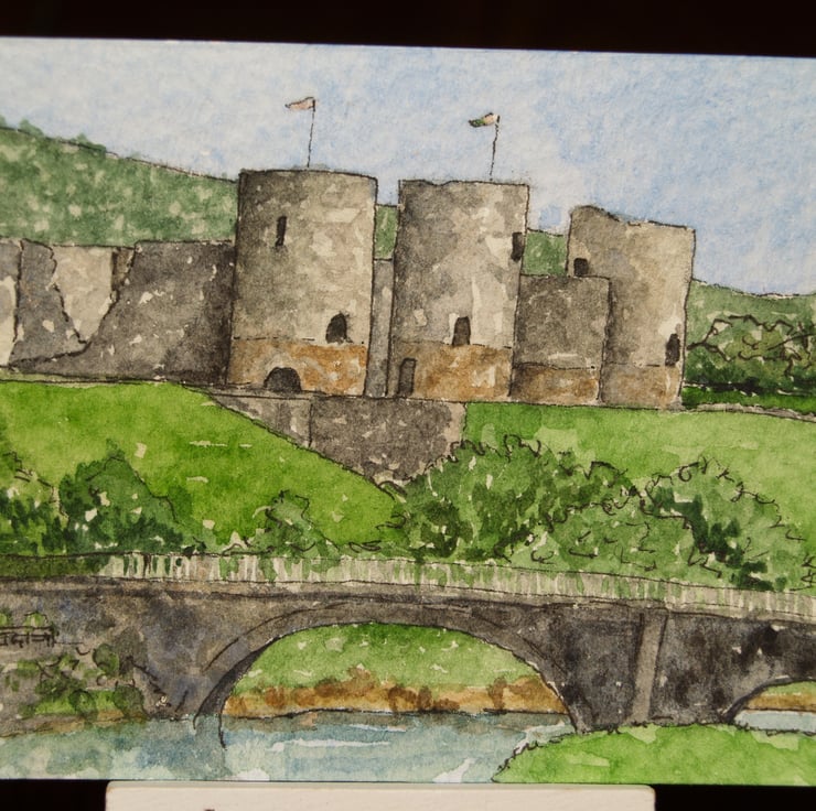 This ACEO is an original, handpainted watercolour of Rhuddlan Castle and the River Clwyd, near Rhyl in North Wales. It measures 2.5 x 3.5 inches (63 x 89mm). As an original work of art, it would make a unique addition to any ACEO collection.