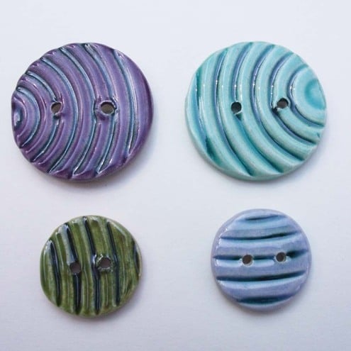 These cute little ceramic buttons are made from white earthenware clay, embossed, glazed and fired to 1100 degrees, so they are nice and strong.