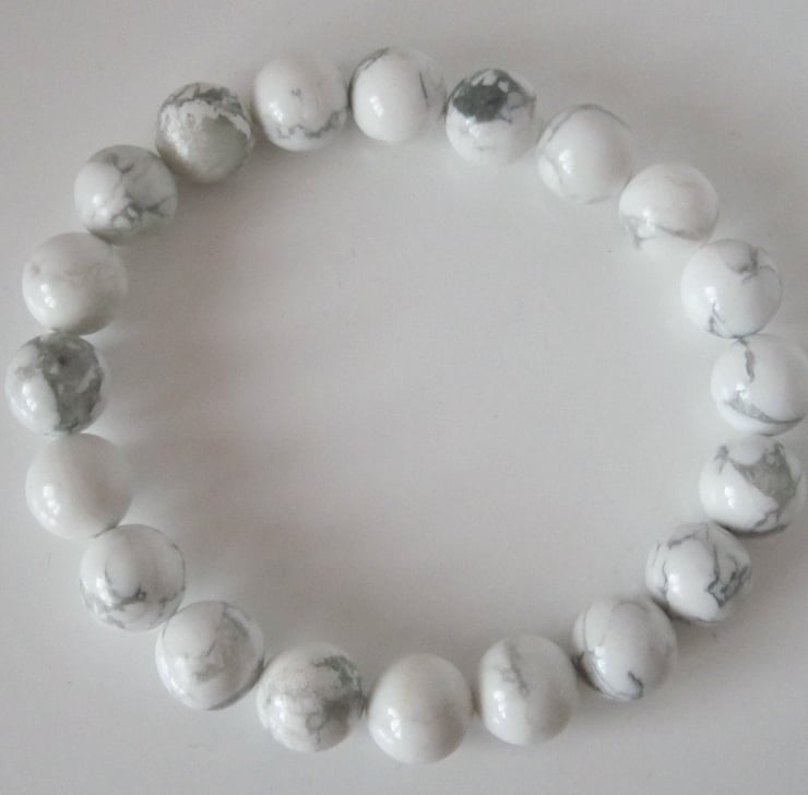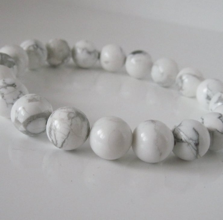 This lovely stretch bracelet has been hand made using 10mm White Howlite round beads.