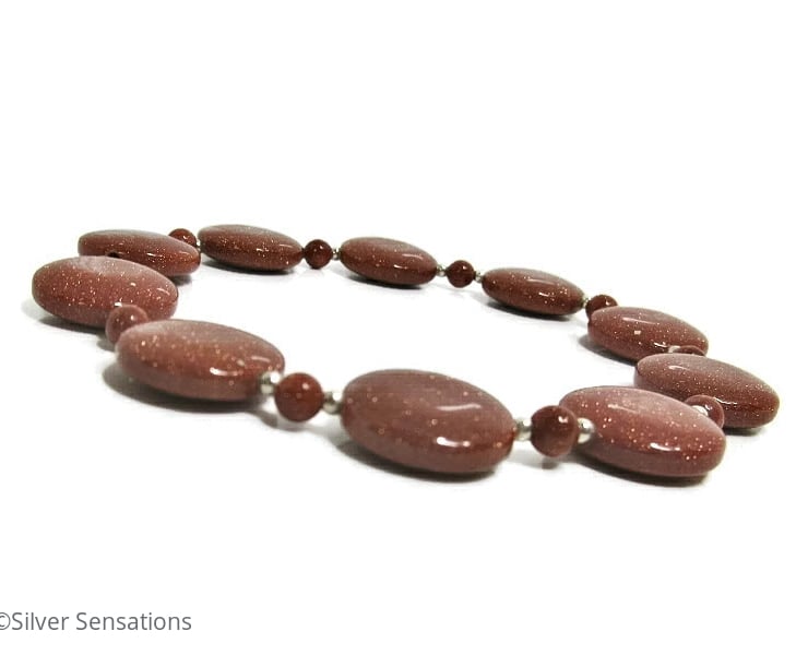 This striking, hand made bracelet has been designed using sparkly tan brown Goldstone Sandstone smooth & puffy coin beads which are 14mm in size.