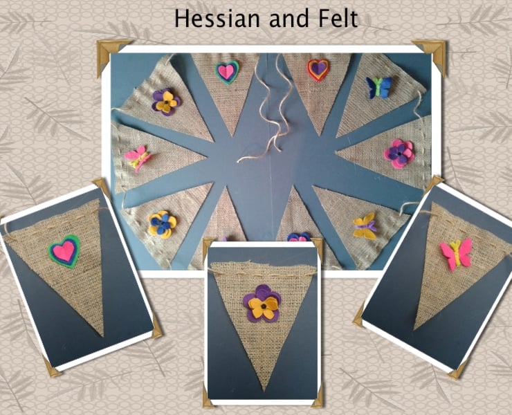 Each flag is decorated with the addition of a 3 dimensional felt decoration of either a heart, a butterfly or a pansy.