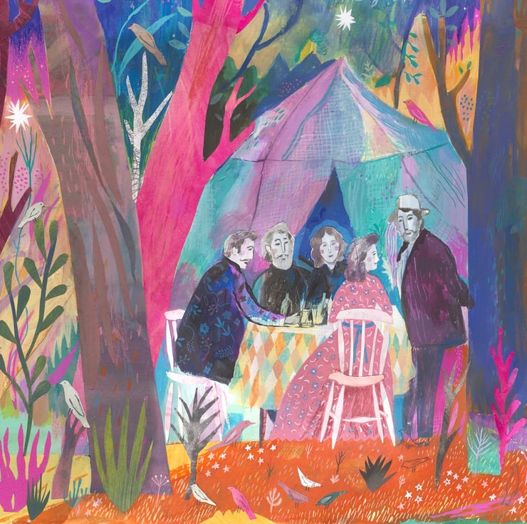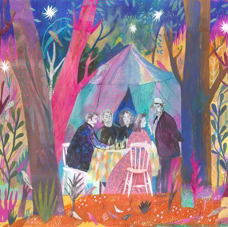 This image is inspired by Jones's wood, a large forest in New York in the early 1800's, back then people entertained themselves on long summer evenings by gathering in the woods!