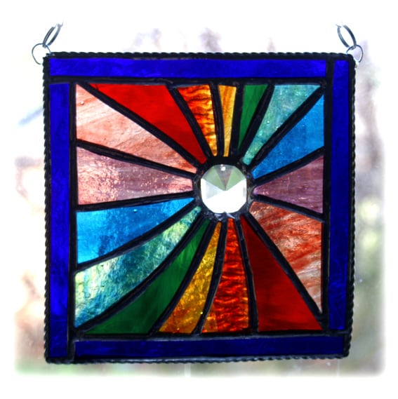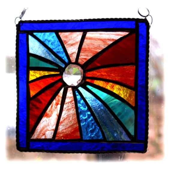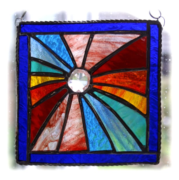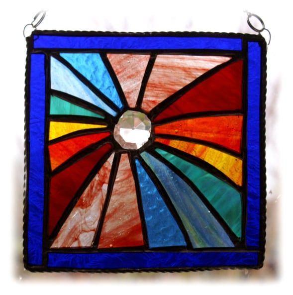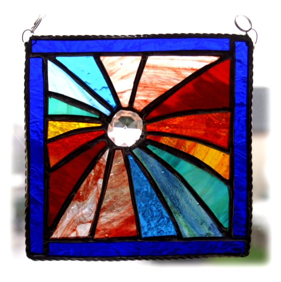 This is a stained glass suncatcher made using the Tiffany copper foil technique.