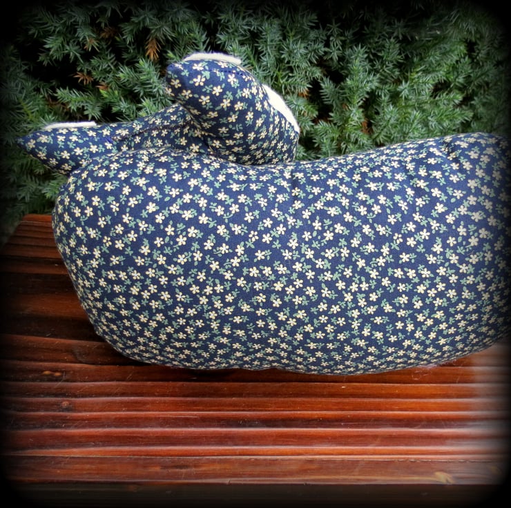 He is made from a vibrant cotton with cream wool accents.