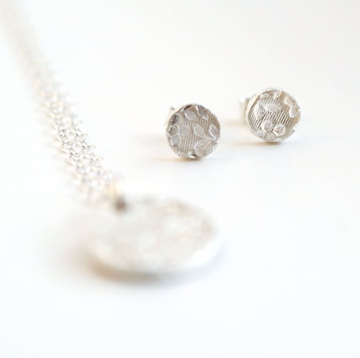 A lovely set of Secret Garden Earrings (6mm diameter) and necklace (12mm), made from fine silver.