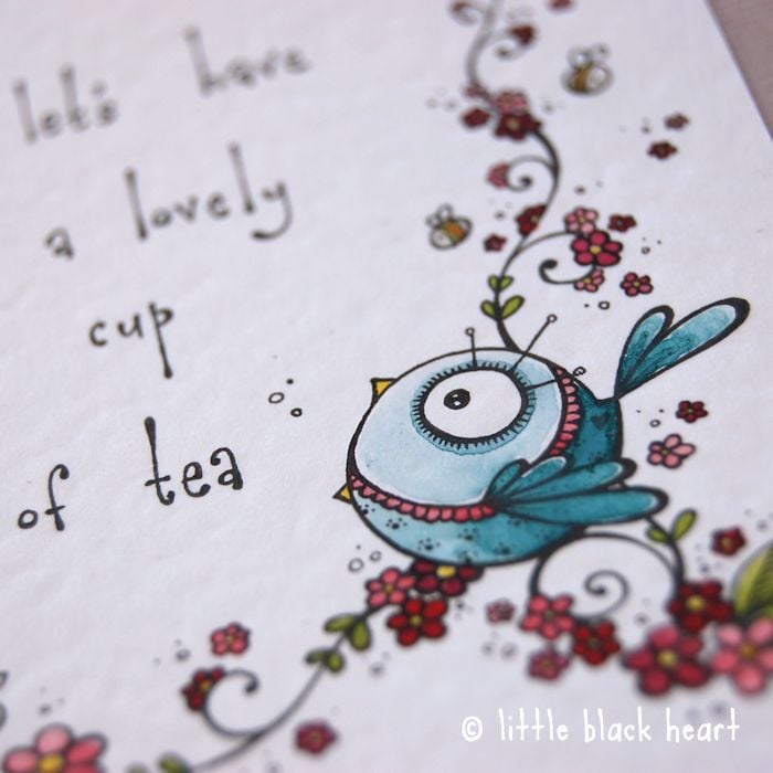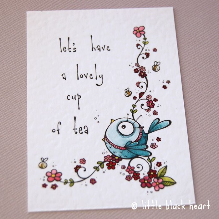 this little bluebird says it's time for a cup of tea.