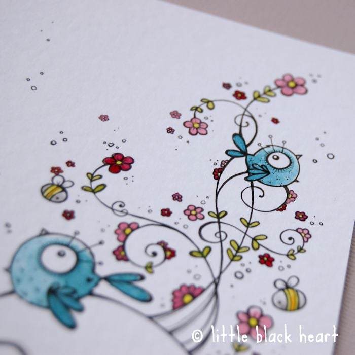 this illustration is an original artwork in artists pens and watercolour paints, on lovely white textured cardstock (300gsm). drawn in fine detail with a tiny 0.05 nibbed pen, and carefully coloured with just the tip of a tiny paintbrush.