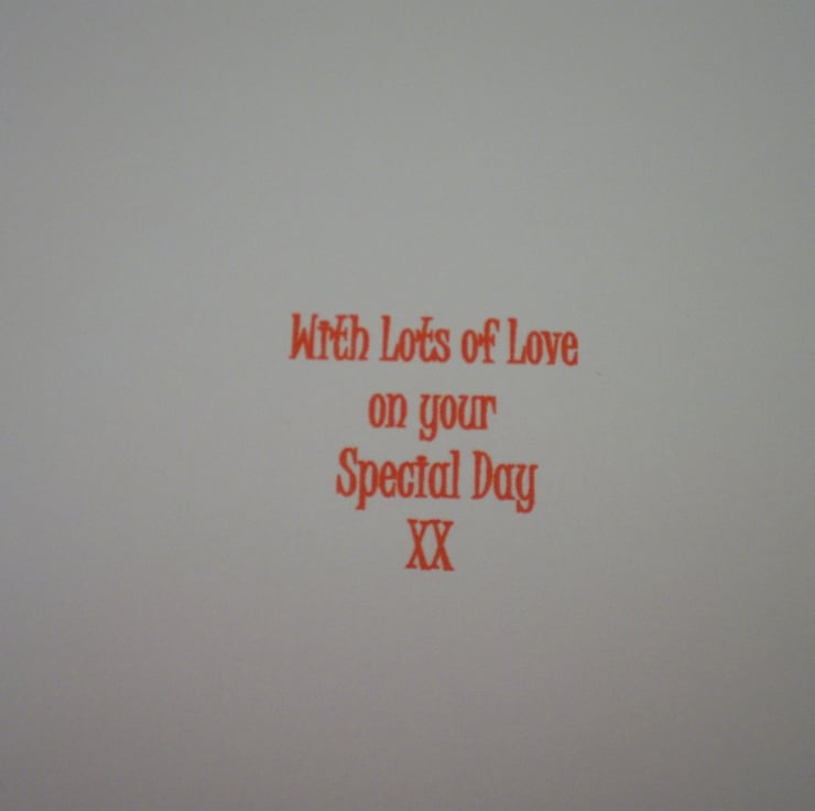 Insert is white with a hearts punched out and there is a verse which can be changed or left blank for your own words.