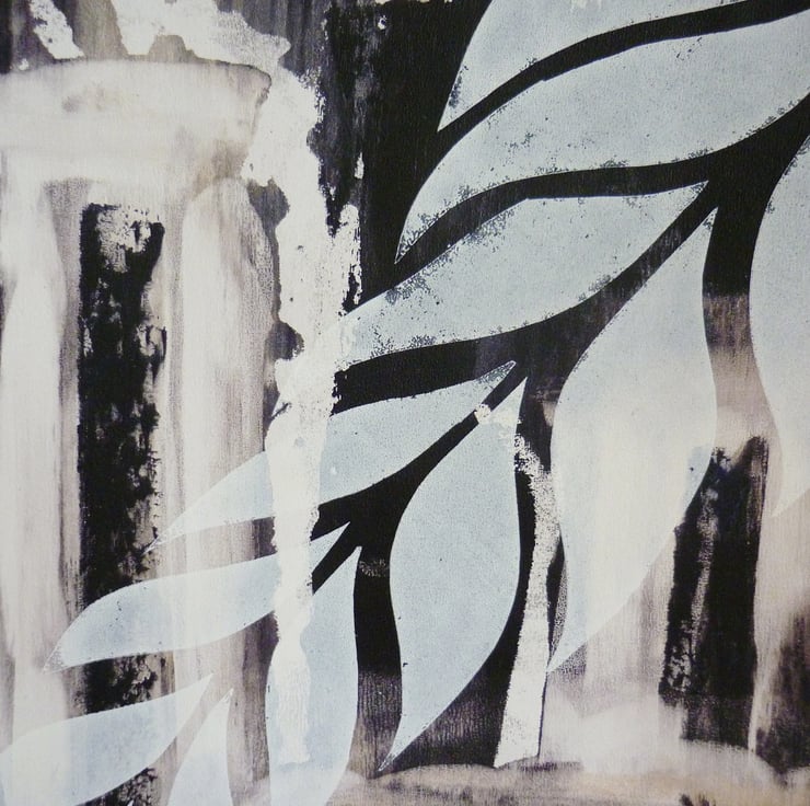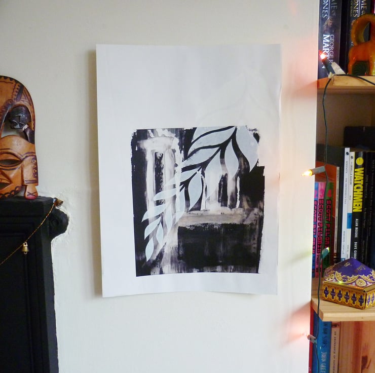 These screen prints were based on an idea of nature taking back the areas of the world that humans have taken from it in order to further industrialisation. The prints are made with two layers- the underneath being one of vaguely shaped buildings and the top one being these pure white patterns of leaves.