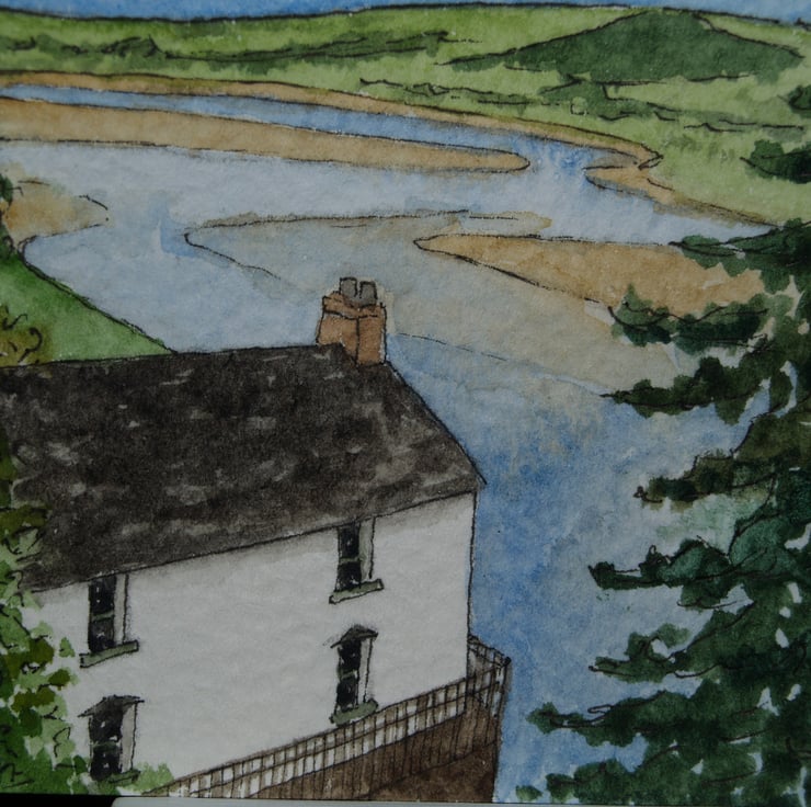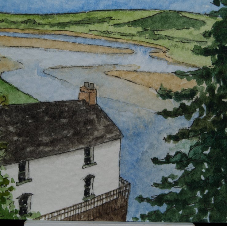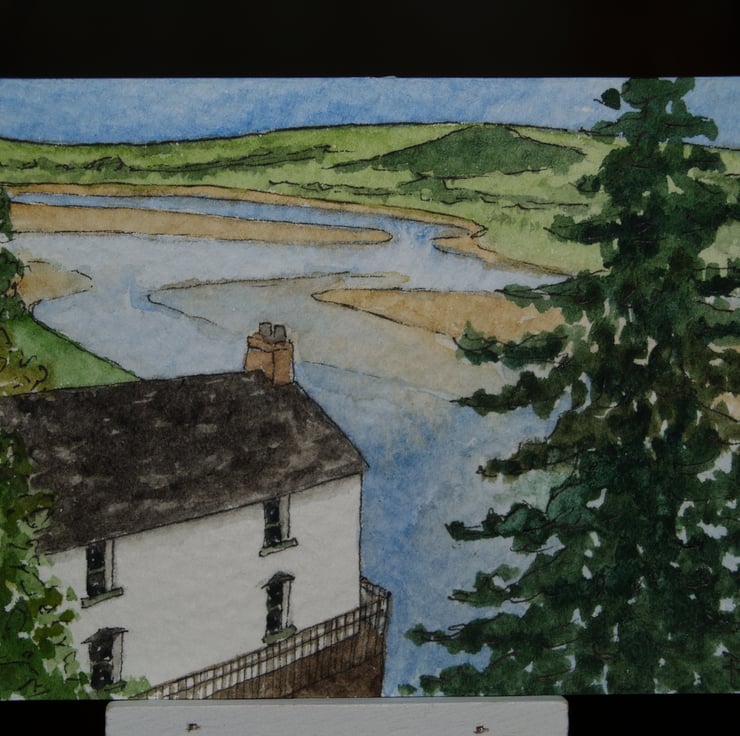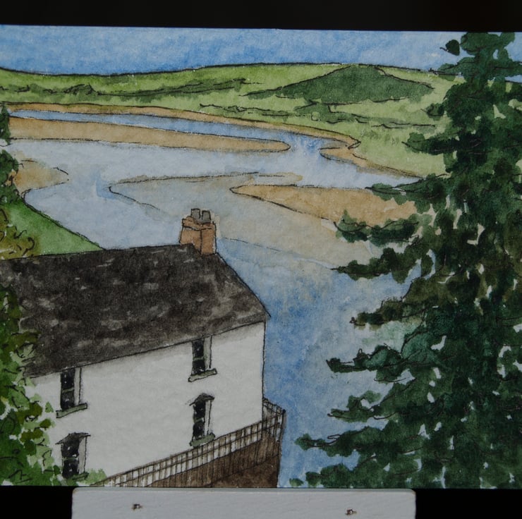 This ACEO is an original, handpainted watercolour of Dylan Thomas' boathouse at Laugharne. It measures 2.5 x 3.5 inches (63 x 89mm).