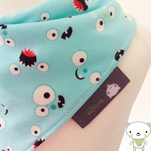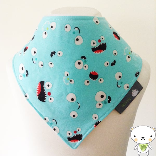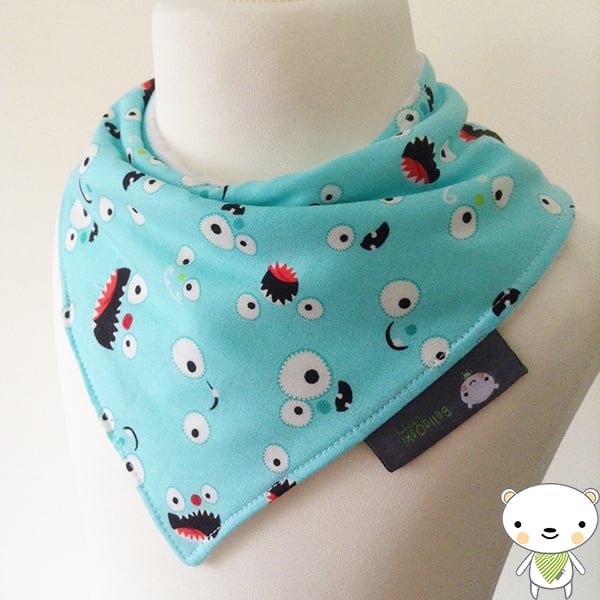 Perfect gift for your little Girl or Boy. Cute MONSTER FACES on a Blue background all over this Ultra Fab n funky Fabric. Very Scandi-chic! Give that perfect Hip & Trendy Edge to their outfit with this fab n funky Bib. Made from 100% Cotton and lined with an ultra soft and absorbent fleece fabric to keep clothes dribble free and looking ULTRA cute!