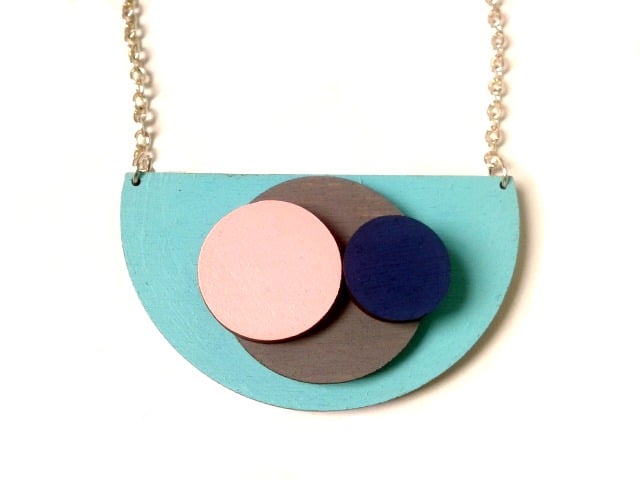 Handmade arty and quirky statement wooden necklace.