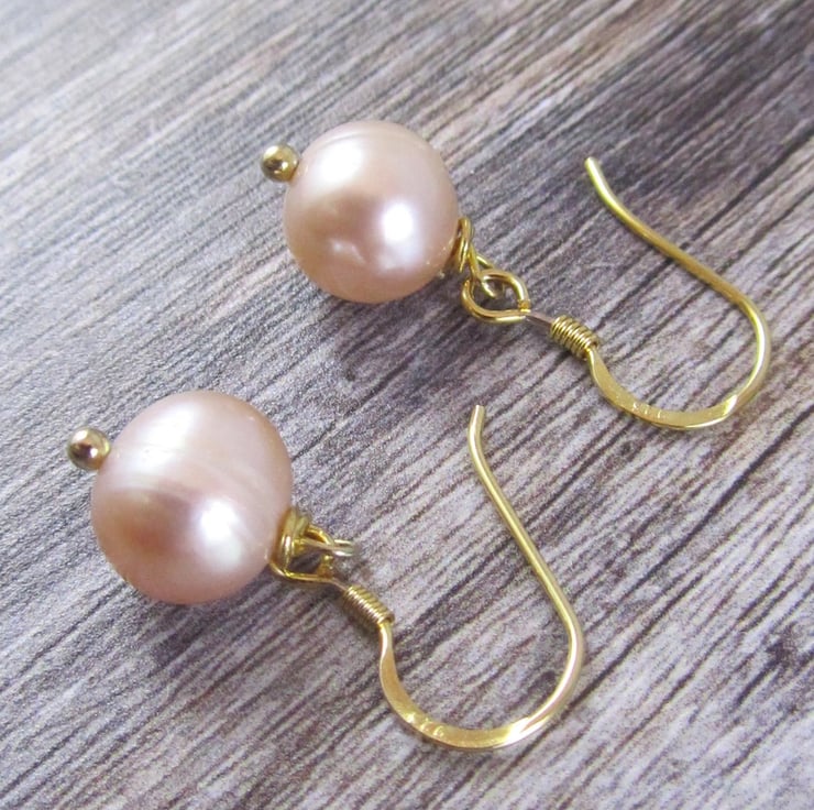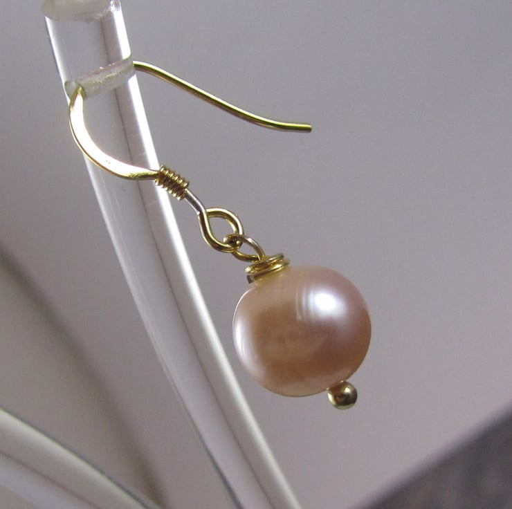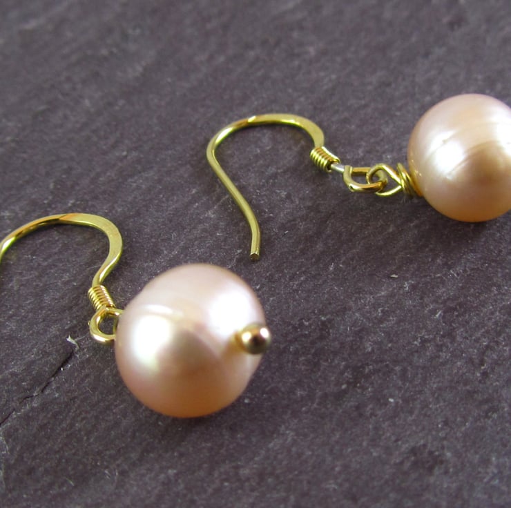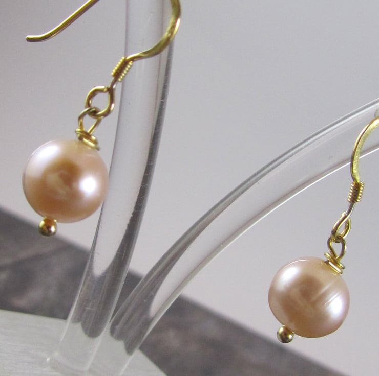 Beautiful peach pearl earrings. These are created with real peach pearls and gold plated 925 silver. They have a beautiful classic and simple style to them. Perfect for everyday wear or that special occasion.