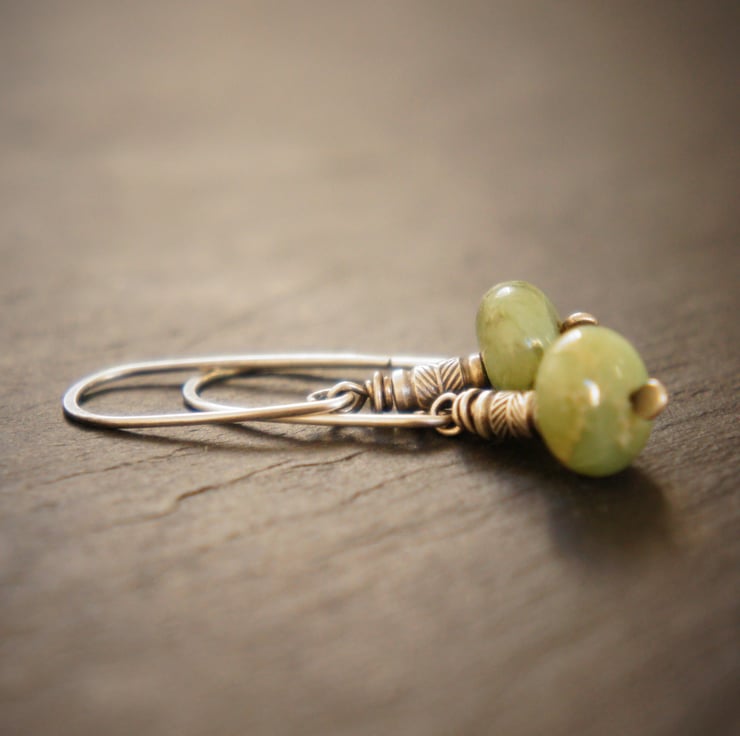 Variscite,Pure Silver feather style beads and sterling silver earrings.