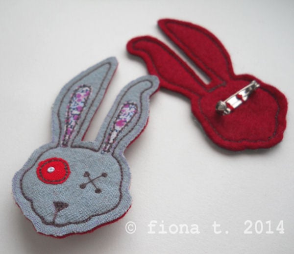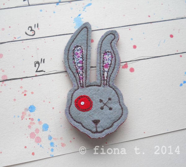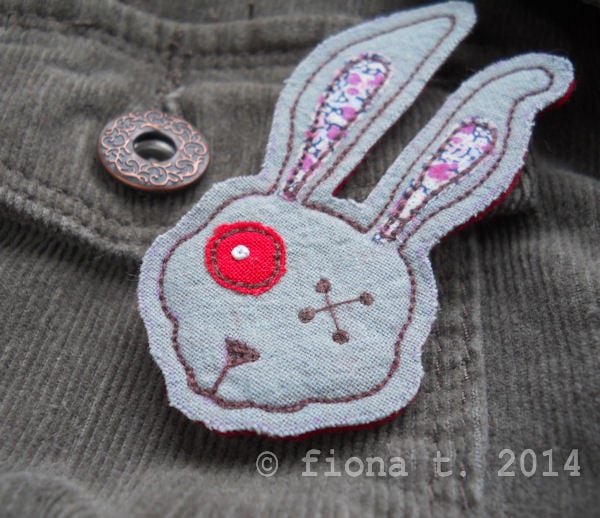 embroidered zombie rabbit fabric brooch.