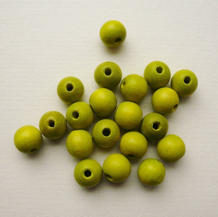 This listing is for 20 x lime green round wooden beads. They measure 8mm.