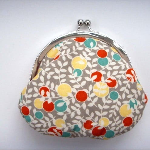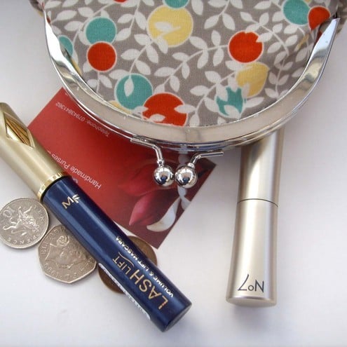 Moda fabric with contrasting lining,padding and metal frame clasp.