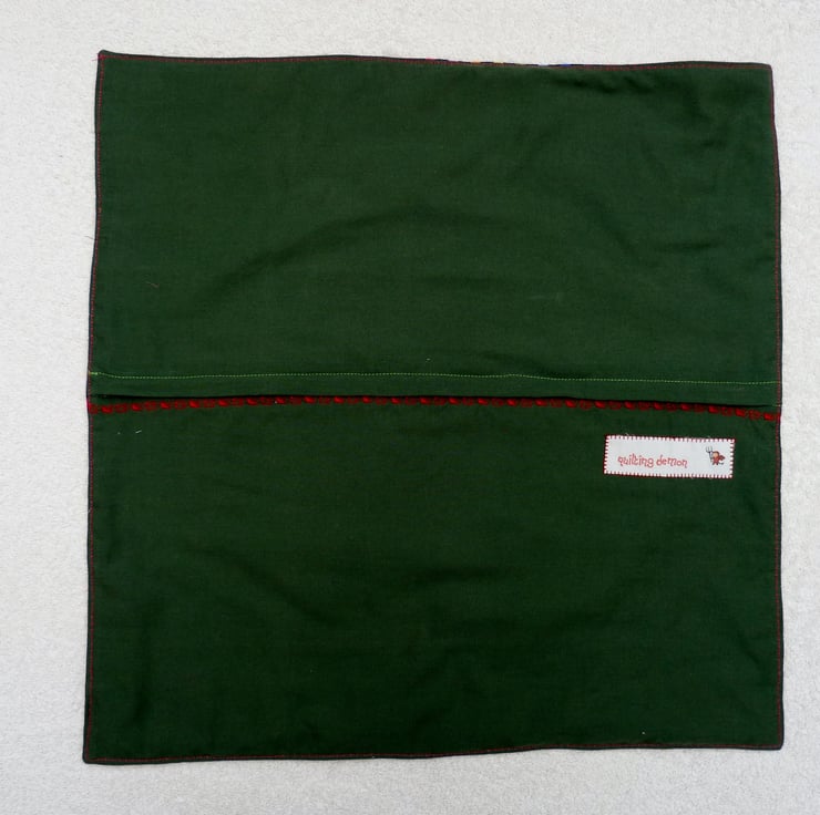 The van has been pieced and machine zig zag stitched in place. I have then quilted the cushion front. The cushion is completed with a concealed zip fastening on the back and I have added decorative embroidery in contrasting thread.