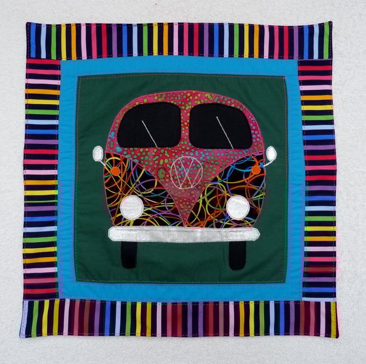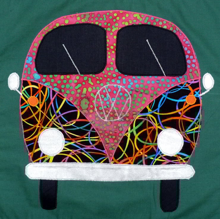 I love VW camper vans and have a 1972 van. I also love sewing, so it was great to design and create this applique van and create a useful quilted cushion.