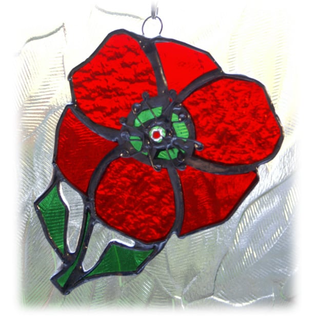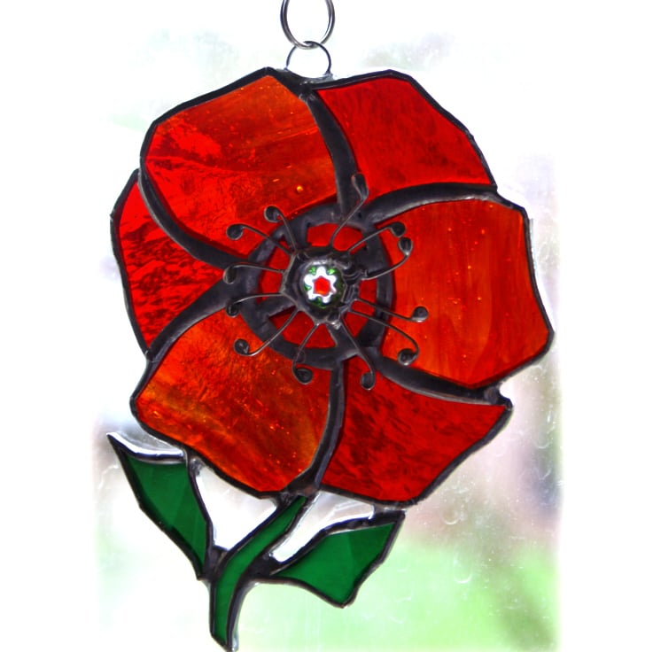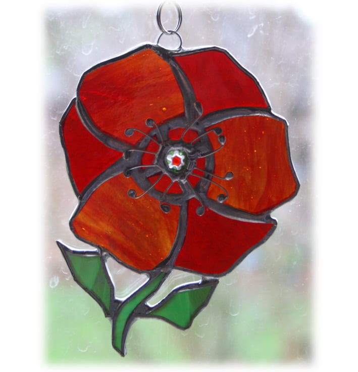 This is one of my favourite designs - a poppy - a stained glass suncatcher made using the Tiffany copper foil technique.
