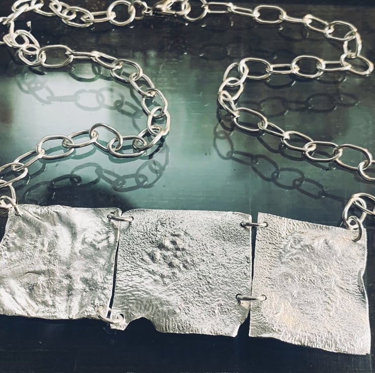 A striking handcrafted piece of jewellery, featuring 3 large Squares