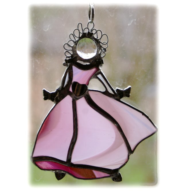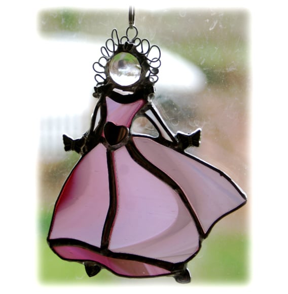 This is a stained glass suncatcher made using the Tiffany copper foil technique.