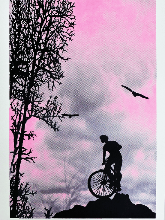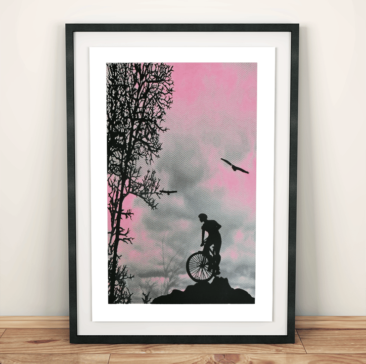 Mountain Top image screen printed in 5 layers with added ink detail.