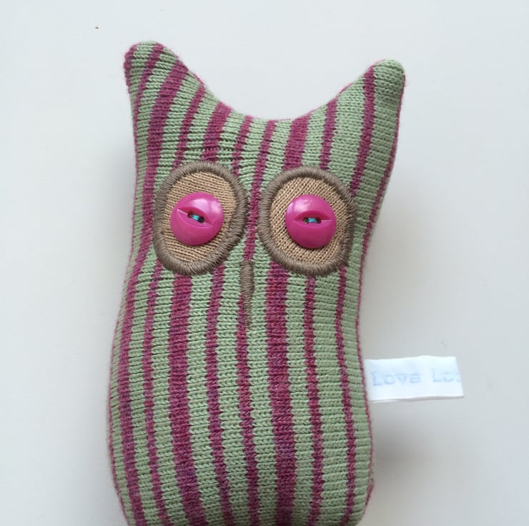 Knitted owls with lovely buttons and ribbons all hand knitted and made by me.