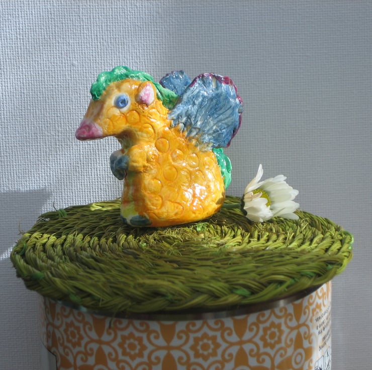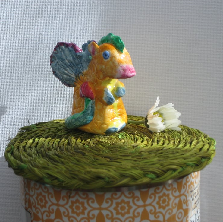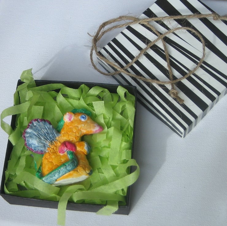 Was £8, now £4. This whimsical little creature has been handmade in air-dry clay, painted with watercolours and finished with a coat of varnish. It measures 5cm high. A quirky gift for a man or woman for a birthday or any other special occasion. Attractively gift boxed (may differ from that shown).