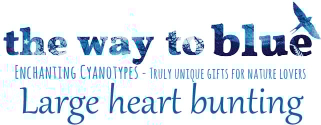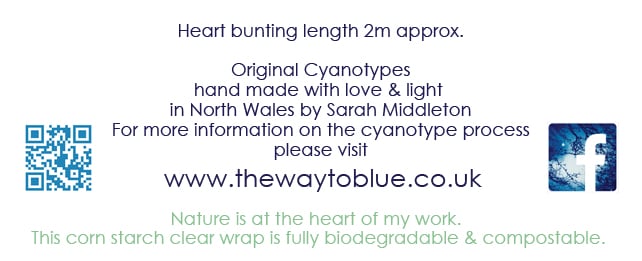 Please note whilst every effort will be made to make the bunting as similar to the image as possible each heart bunting is unique and hand-made to order. Due to the nature of the cyanotype process the blues may vary slightly.
