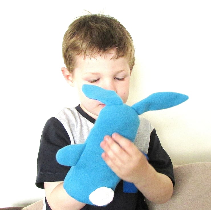 This cute little bunny can be stood on a shelf when not being used as a puppet, there is a little pocket in the front for holding little notes or hiding away little toys, it could even be used if the tooth fairy needs to visit.