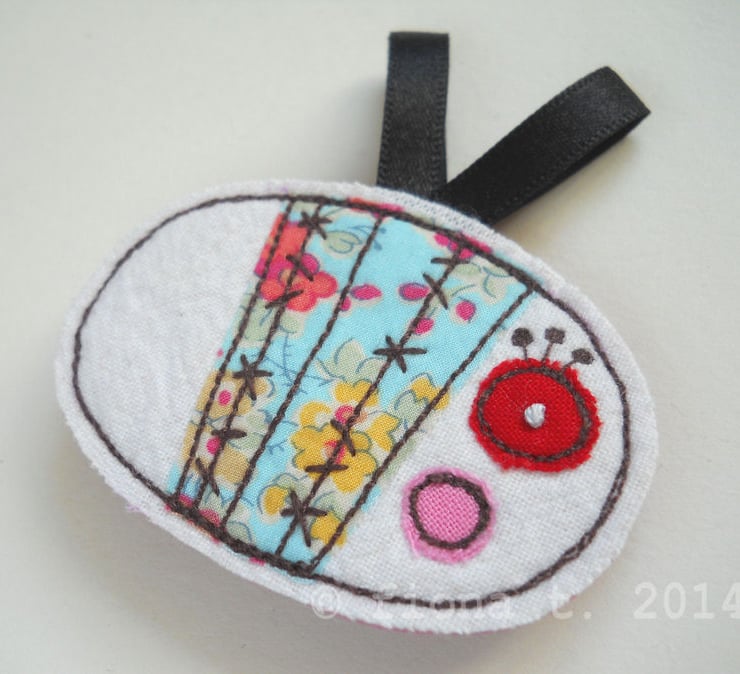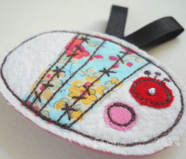 this freehand embroidered brooch measures approximately 5cm (2 inches) tall.