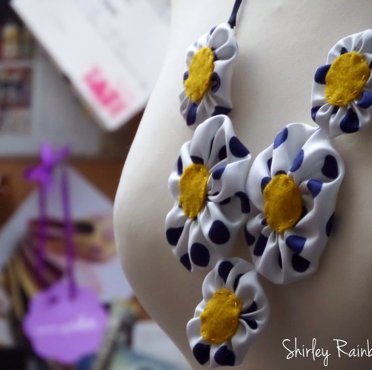 I've wanted to try making Suffolk Puffs for a while now, and thought this fabric would be a good one to try with. My gran gave it to me years ago and I wanted a special use for it... And having seen some vintage necklaces made from Suffolk puffs I had a Shirley Rainbow mission! Some time later and I'd created this garland necklace! Just perfect for spring, dressed up or down, this necklace will bring a fresh look to many outfits.