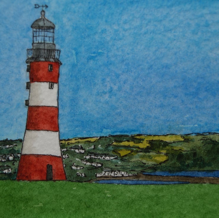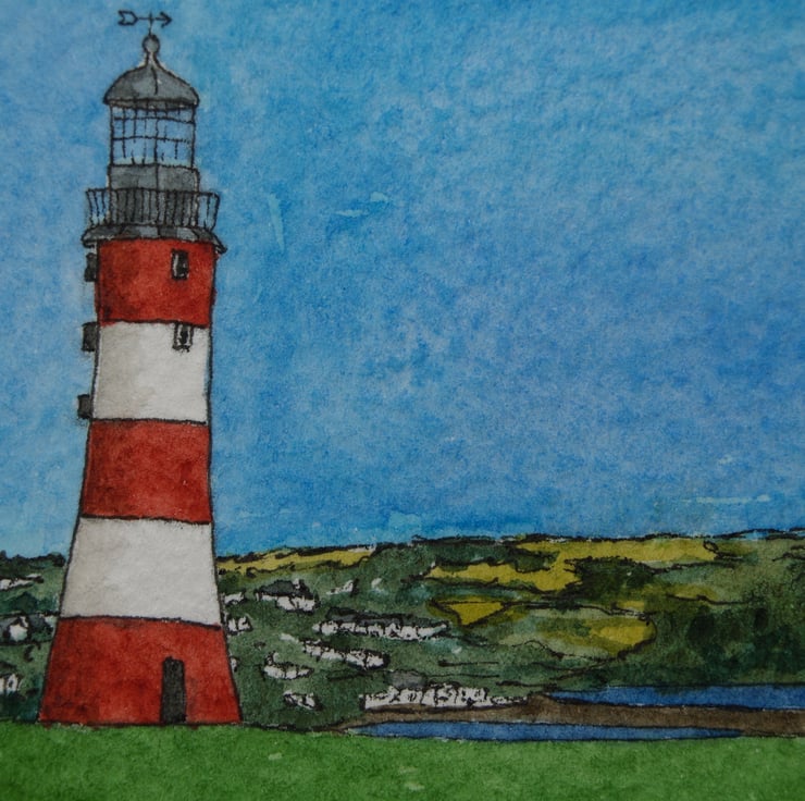 This ACEO is an original, handpainted watercolour of Smeaton's Tower, the Eddystone lighthouse on Plymouth Hoe. It measures 2.5 x 3.5 inches (63 x 89mm).