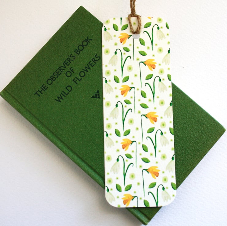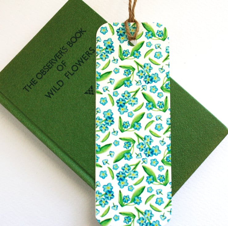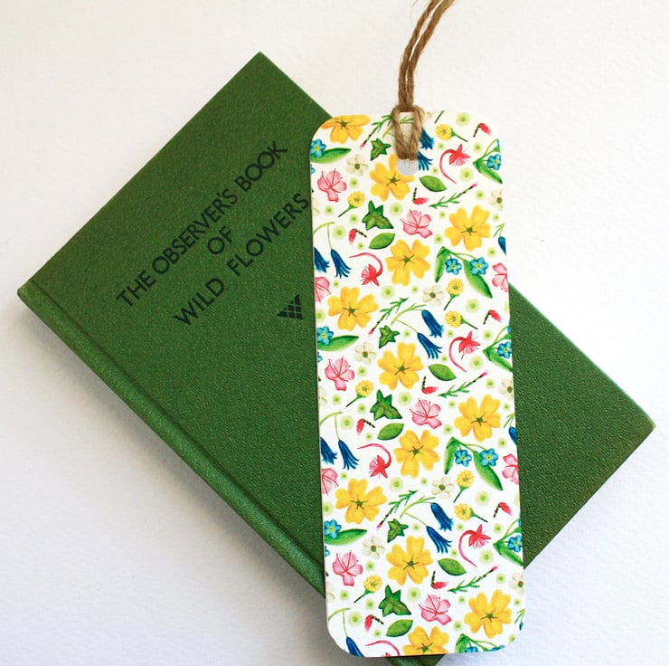 Set of three pretty patterned bookmarks, featuring my original British wild flowers, watercolour patterns, including one springtime pattern bookmark, one forget me not pattern bookmark and one British wild flowers pattern bookmark.