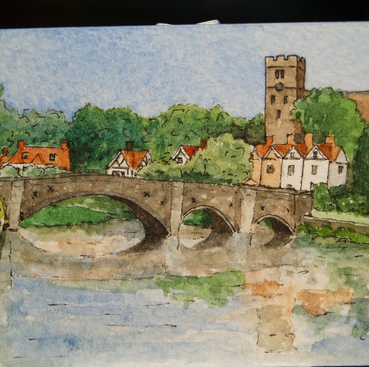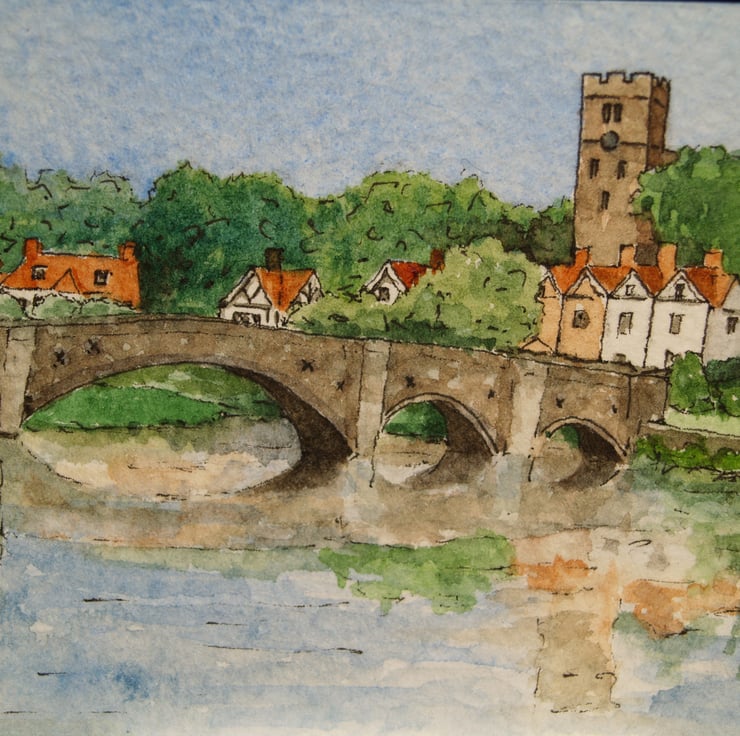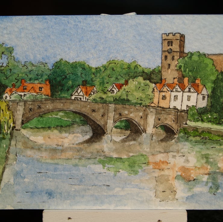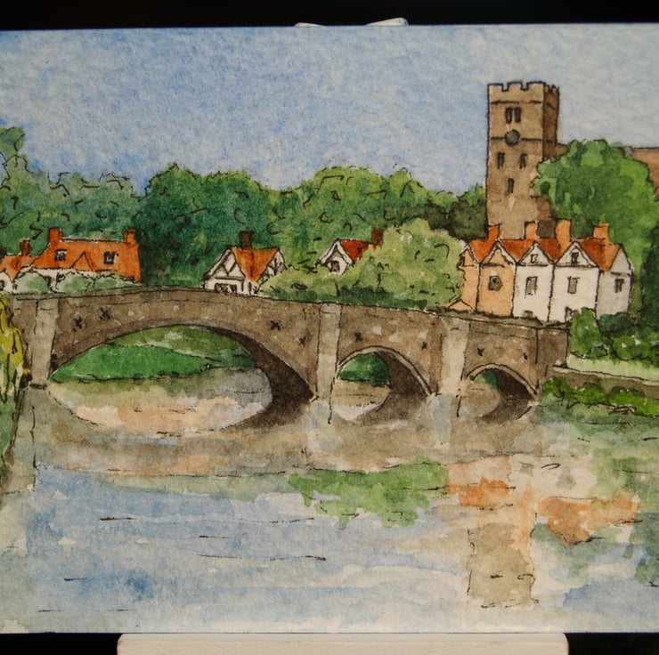 This ACEO is an original, handpainted watercolour of Aylesford and the River Medway in Kent. It measures 2.5 x 3.5 inches (63 x 89mm).