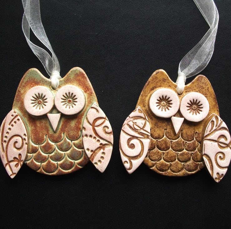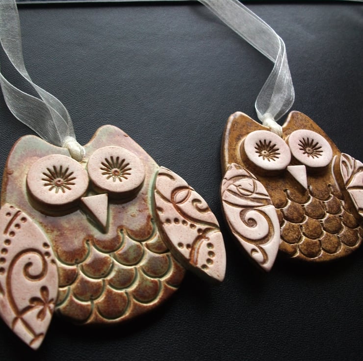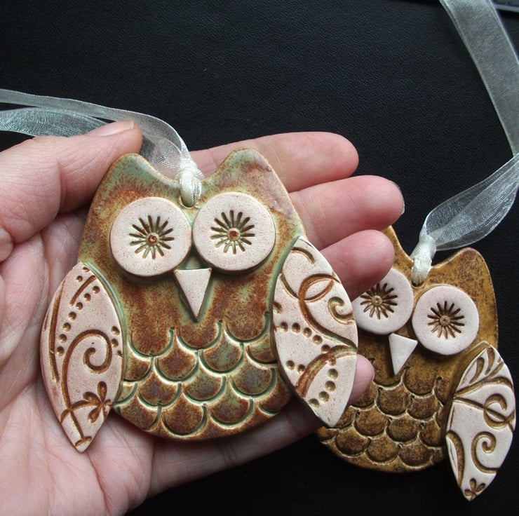 Each owl measures 6cm x 7cm x 1cm deep or 2 1/4" x 2 3/4"