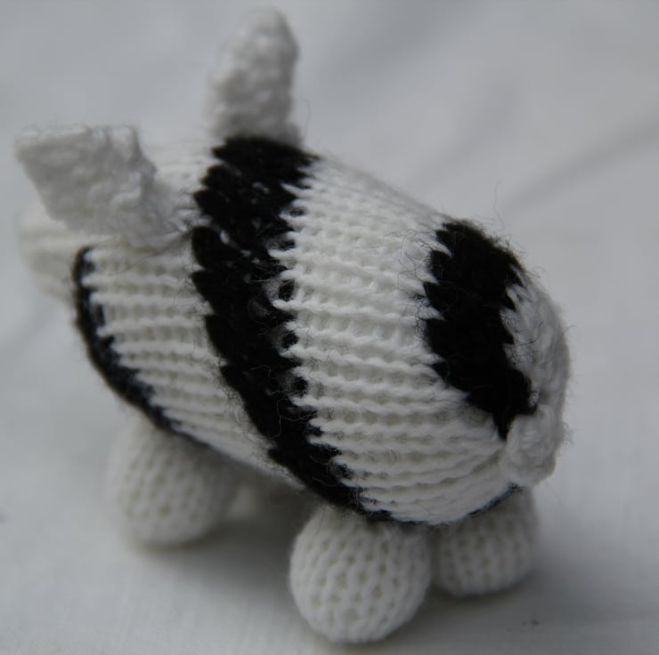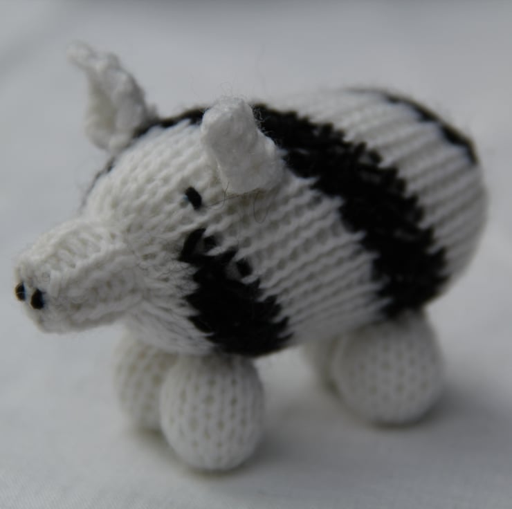 There's no Bah Humbug with this little chap! He's a real sweetie piggy with typical humbug black and white spirals, measuring 5 cm high and 8.5 cm from snout to wiggly tail. These 'Sweet Shop' piggies are hand knitted from my own design, stuffed with toy-grade polyester and have no sharp bits. Because each Sweet shop pig is knitted individually, your piglet will be unique. Perfect for anyone's old-fashioned sweetie!