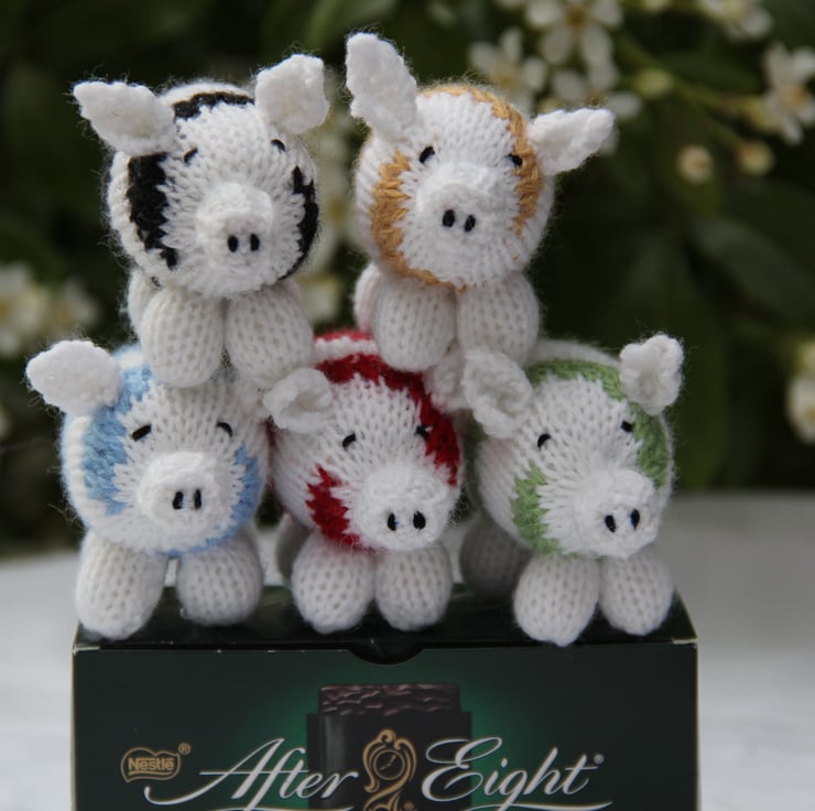 When I was up North a few months ago, I passed an old fashioned sweet shop just like the one I used to go to with my Granny in Middlesbrough when I was a child - shelves of jars packed with all kinds of brightly coloured boiled sweets. So bad for your teeth, but great inspiration for these piglets! These are my mint collection, I'm just thinking how I can follow up with cough candy, parma violets and rhubarb and custards!