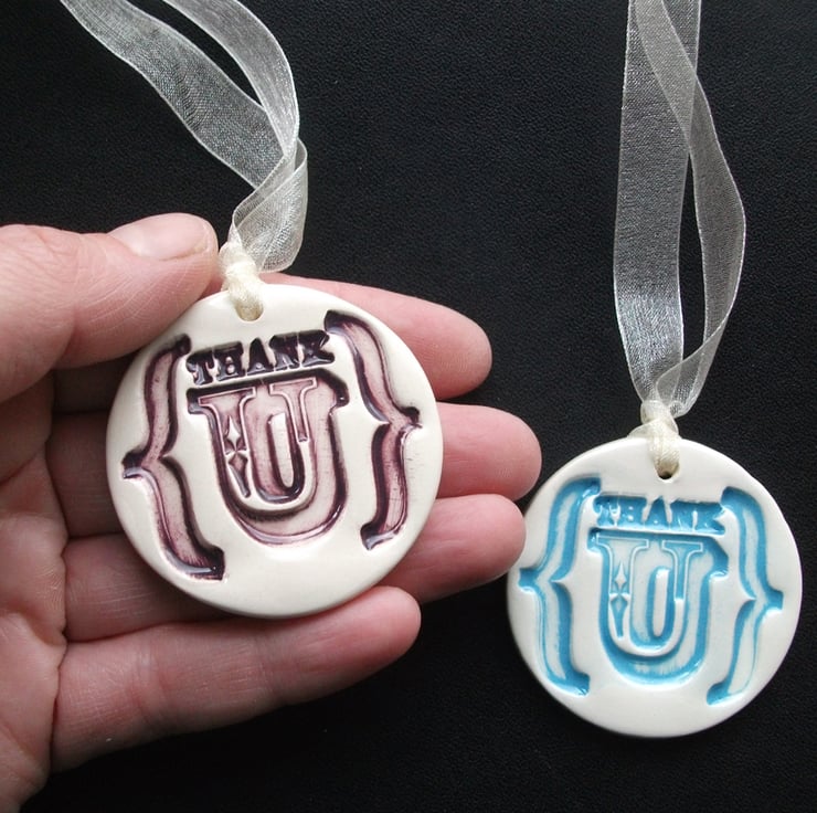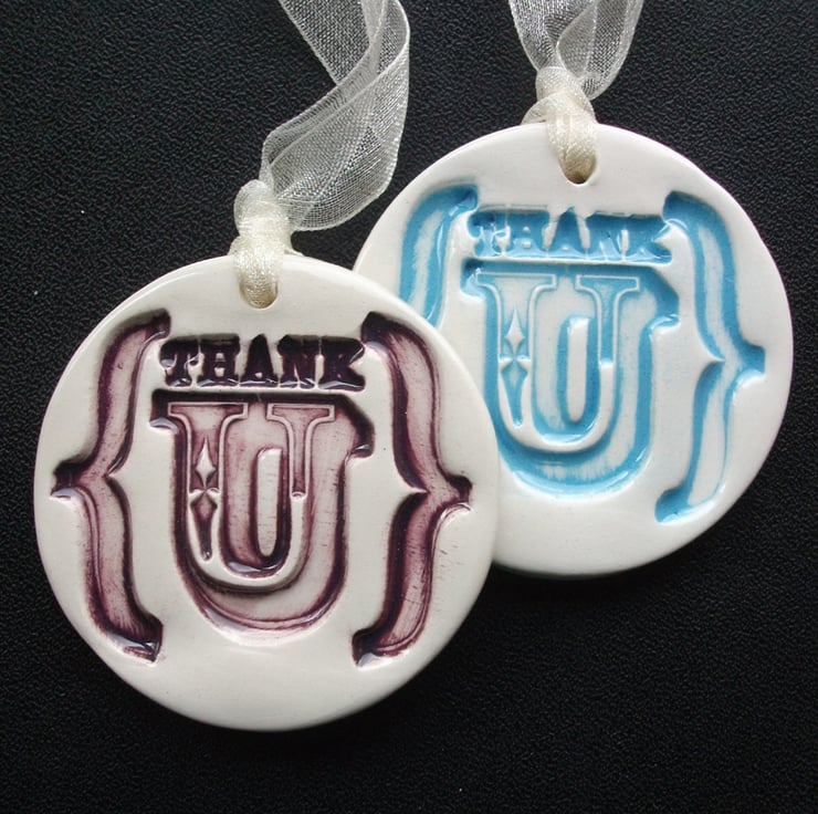 They are embossed with the word Thankyou and then finished with a lovely glossy glaze and fired to a top temperature of 1100 degrees, making them nice and strong.