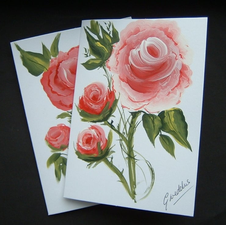 TWO hand painted A6 greetings cards. These cards measure approximately 4" x 6" and are completely original. These are NOT prints and the price is for the Two of them. Both cards are blank inside for your own greeting and will come complete with quality white envelopes and a polybag to protect them. Both are original artworks and so care should be taken with them. After use, they can be framed .