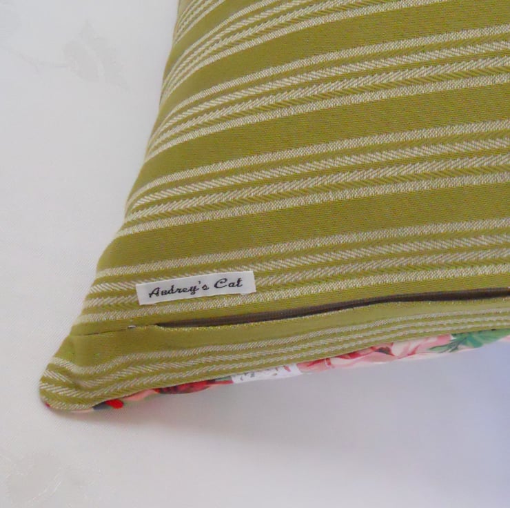 3. Envelope closure, cotton patachio green ticking used on back of cushion